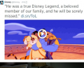 Áö³ 12ÀÏ µðÁî´Ï °ø½Ä Æ®À§ÅÍ¿¡´Â ¡°He was a true Disney Legend, a beloved¡¦ |